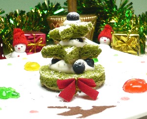下の写真は、抹茶のスポンジケーキを星形に切って組み合わせたものです。