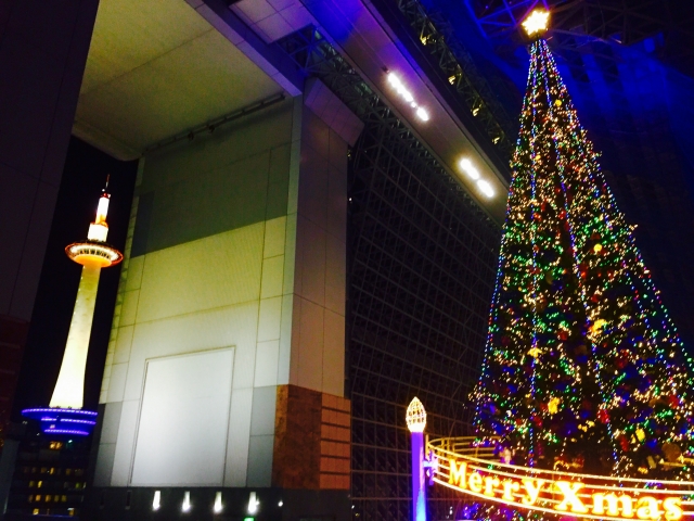 今や京都だけでなく関西指折りのクリスマスのデートスポットとなったJR京都駅のクリスマスツリーとイルミネーション。