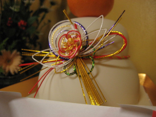 まず、鏡餅を水にくぐらせ、お皿を水で濡らして、その上に置きます。