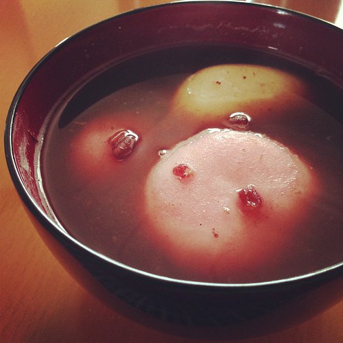 ④そこに焼いたお餅か電子レンジで柔らかくしたお餅を入れて完成です。