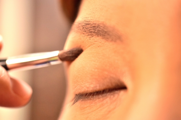ハイライトカラーはアイホール全体に馴染ませてあげるようにしましょう。目の周囲にくぼみがありますので、そこを目安にブラシで乗せていくと綺麗な仕上がりになります。