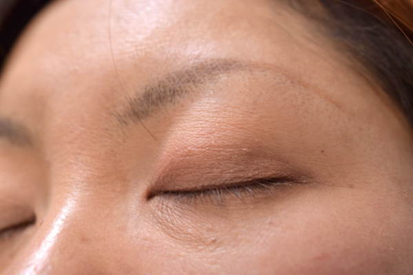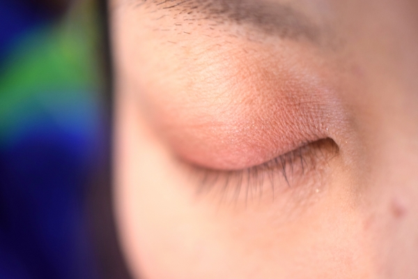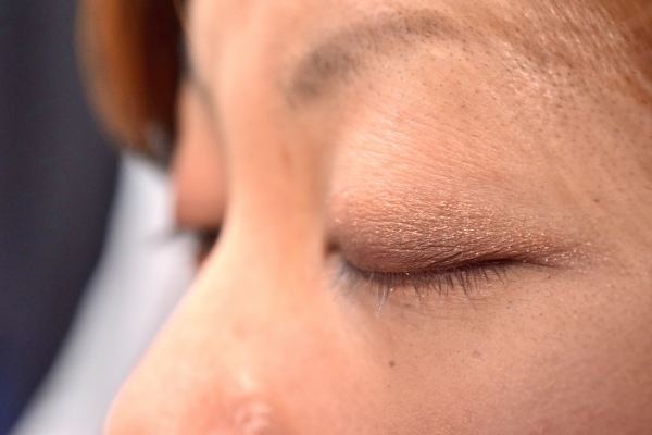 オレンジ単色でもエッジをボカして、まぶた側を少し濃い目にするなどグラデーションを意識しています。そのため最後にブラシで全体的に馴染ませる作業はとっても大切です。
