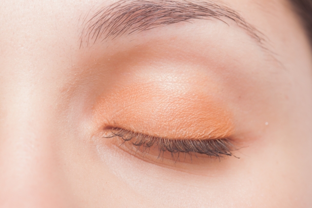 アイシャドウの塗り方:オレンジ×ブラウン「縦割りグラデ」
