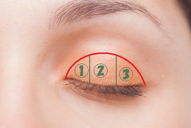 アイホールを縦に3分割、内側からハイライト、中間、締め