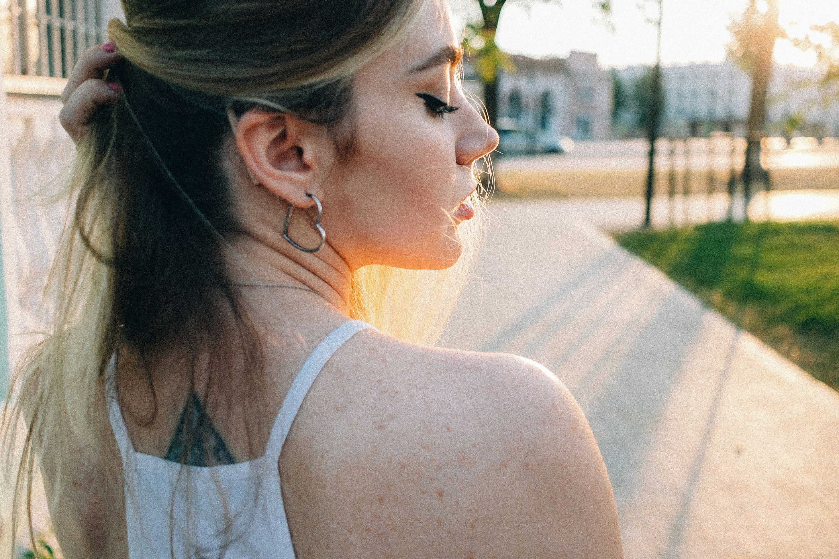 三つ編みで緩めにセットした髪をくるくるっとひとまとめにしてヘアピンで固定していきます。しっかりと固定できたら毛束を掴んで編み込み全体をゆるめていきましょう。首筋がすっきりするヘアスタイルなのでタートルネックやハイネックの服に合わせやすいヘアアレンジです。