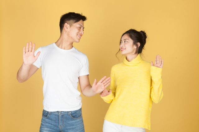 友達2人の時やカップル2人の時にも使える流行りでかわいいプリクラポーズですが、カップルならラブラブ感が出る手繋ぎ犬ポーズがおすすめ。