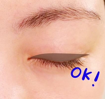 中を塗りつぶしたらアイラインは完成。一重さんの幅広アイメイクの完成まであと少しです♪