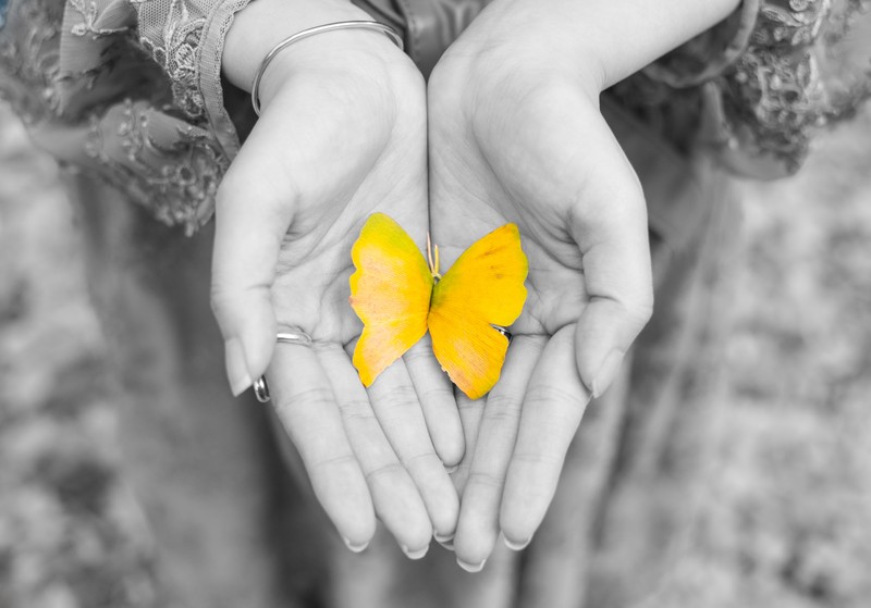 手で取ったホホバオイルを手の中で温めます。