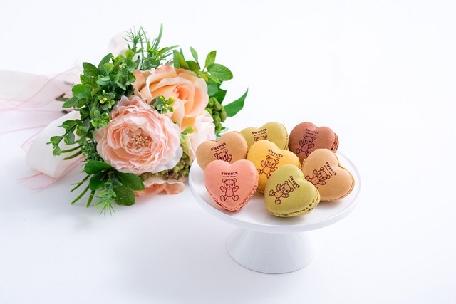 ハート型のマカロンで、真ん中にサマンサタバサのマスコットである「アイミー」というクマがいるのも可愛くてポイント高いですね。カラフルなマカロンで、味もとっても美味しいですよ!見た目と違って甘すぎないのでおすすめです!