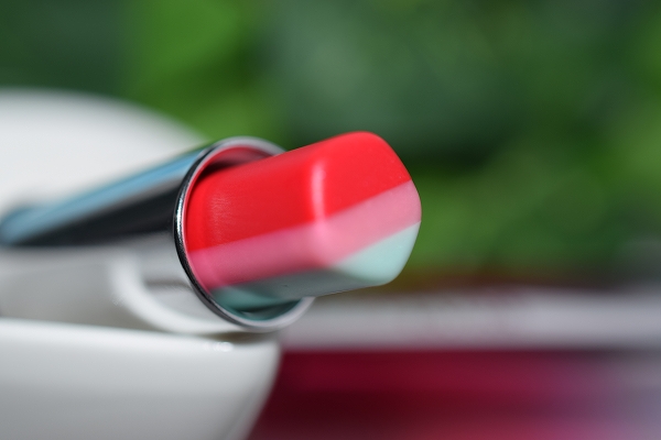 口紅を繰り出してみると、カラーが重なったような構造になっているのにまず驚きます。唇に当てたときに、自然と内側から外側にかけて色が強くなっていくように計算されていますね。