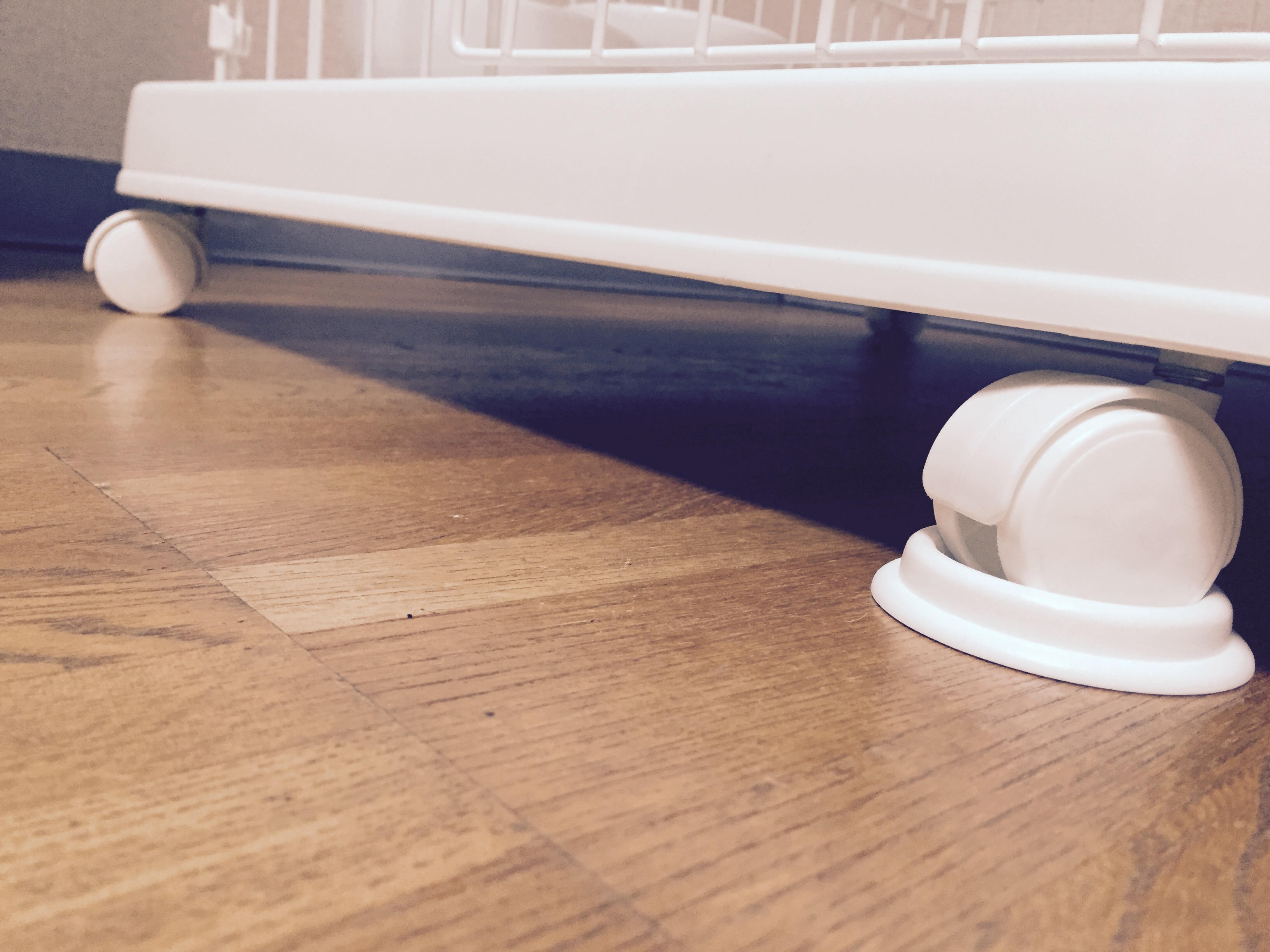 キャスターは非常に便利なものではありますが、ちょっとしたことですぐ動いてしまいます。普段はキャップを付けるか、しっかりとロックを掛けるようにしましょう。