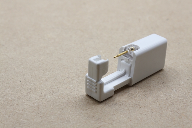 ニードルの方がピアスホールの安定が早いのですが、軟骨ピアスを開けた経験がない人がセルフでニードルを使って施術するのはある程度のコツが必要になり、ピアッサーで開けるよりもコストがかかります。