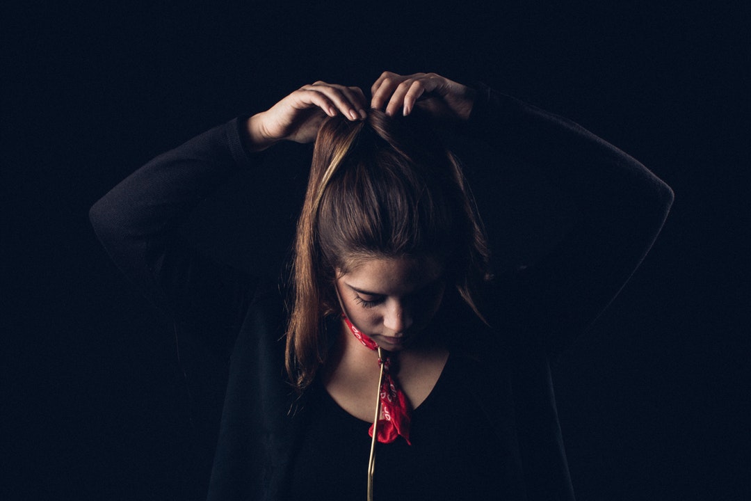 全体的に湿ったら、ムースを両手に薄くのばし、髪全体にふわっと行き渡らせます。ムースの量は、だいたいピンポン玉より少し大きいくらいのサイズでしょうか。後ろの髪は、サイドに持ってきてからムースを伸ばすと、やりやすいです。襟足の部分も忘れずに、全体的にクシュクシュとムースをもみ込みます。
