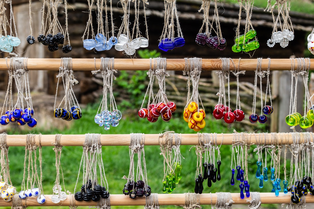 ジュエリーリベロは、天然石やビーズ、ガラス玉などを使って美しいアクセサリーを作っています。宝石のように輝くネックレスやピアスは、女性好みそのものです。